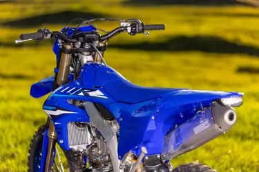 WR250Fs optimaliserte fjærings- og dempingsegenskaper sørger for enestående ytelse i svinger. Det flate setet har ny overflate med gripetekstur som gir føreren maksimal kontroll, og det lette bakhjulet med et 3-krysset eikenav og 22 mm bakaksel gir føreren bedre feedback.