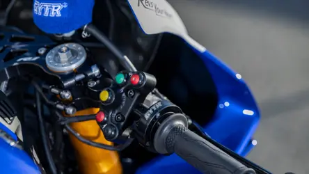 R1 GYTRs racingklare spesifikasjoner omfatter racingstyre og racingfotpinnesett for optimal plassering og kontroll av kroppen. Denne banemaskinen er også utstyrt med et nøkkelfritt drivstofflokk, av/på-bryter samt depotstøtte og -kroker.